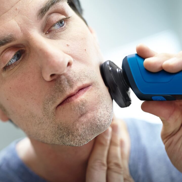 • Đầu hoàn toàn linh hoạt xoay 360° đảm bảo tiếp xúc sát với da giúp bạn cạo râu nhanh và sát kể cả ở vùng cổ và quai hàm