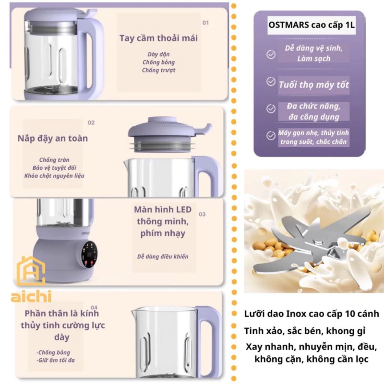 Máy Làm Sữa Hạt OSTMARS 1000ml Cối Thuỷ Tinh Xay Sinh Tố Inox Giao Màu Ngẫu Nhiên #shorts