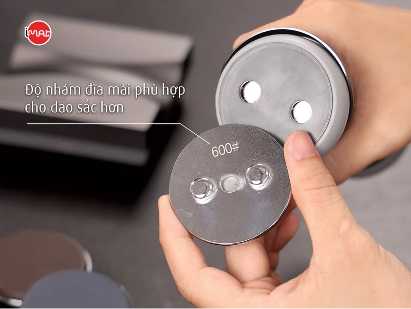 Đĩa mài bằng kim cương (Kim cương nhân tạo trong công nghiệp) gồm độ nhám 300 và 600 dùng để mài tất cả các loại thép có độ cứng cao. Thích hợp để mài phá cho dao cùn lâu ngày, có thể mài được dao mẻ, sứt lưỡi.