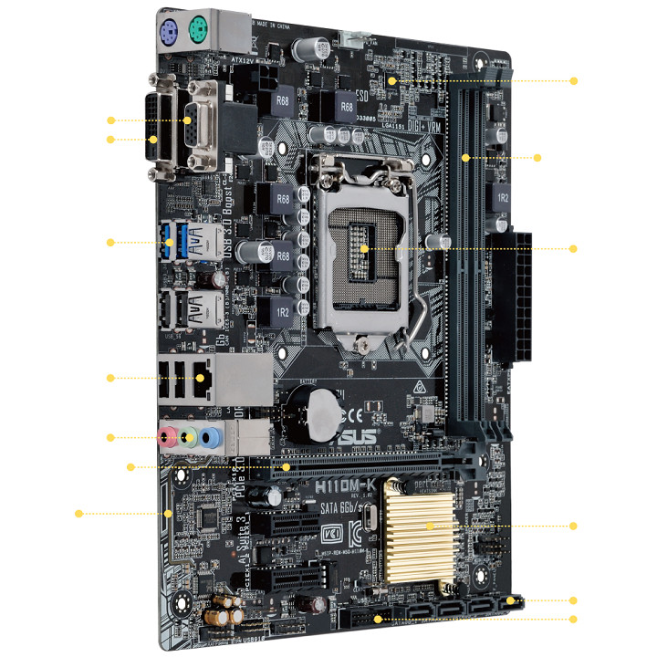 THÔNG SỐ KỸ THUẬT Hãng sản xuất ASUS Model H110M-K Chipset Intel H110 CPU hỗ trợ Intel Socket 1151 cho Thế hệ thứ 7/thứ 6 Core i7/Core i5/Core i3/Pentium/Celeron Bộ vi xử lý Hỗ trợ Intel 14
