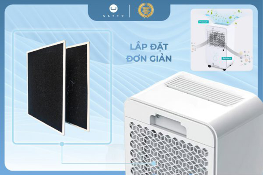 Việc thay thế màng lọc cho máy hút ẩm trở lên vô cùng đơn giản do vị trí lắp đặt màng lọc nằm ngay phía sau máy lọc. Khi tiến hành thay thế, chỉ đơn giản là mở nắp nhựa chắn phần màng lọc cũ và thay thế màng lọc cũ với một màng lọc than hoạt tính mới. Vị trí đặt màng lọc đã được cố định bởi các khuôn nhựa chắn, bạn không cần lo lắng về việc đặt sai vị trí.