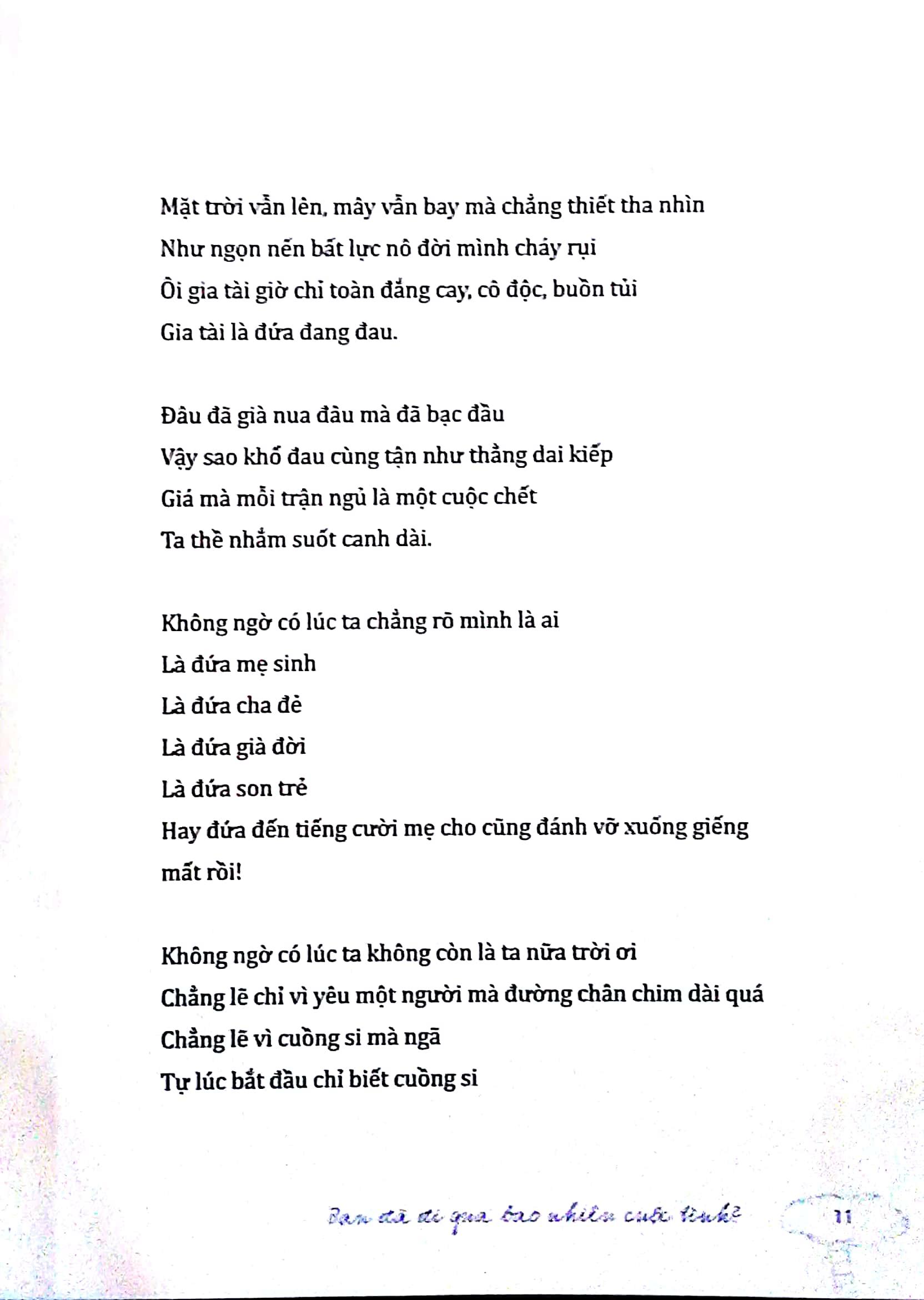 Chẳng Cũng Khoái Ru Hầu như chúng ta chẳng bao giờ thực sống. Lúc còn trẻ, ta mơ ước tương lai, sống cho tương lai. Nghĩ rằng phải đạt cái này cái nọ, có được