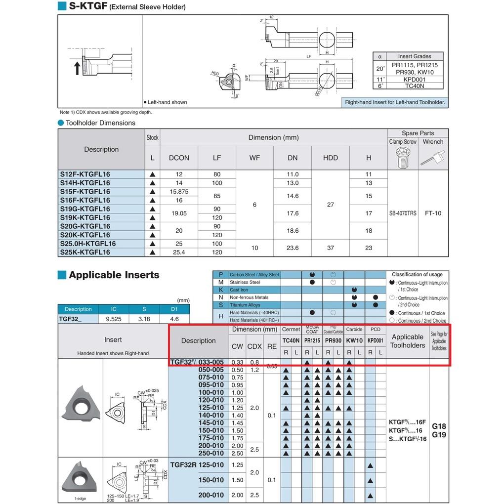 Compatible holder: KTGFR 16F, KTGFR 16, S KTGFL16