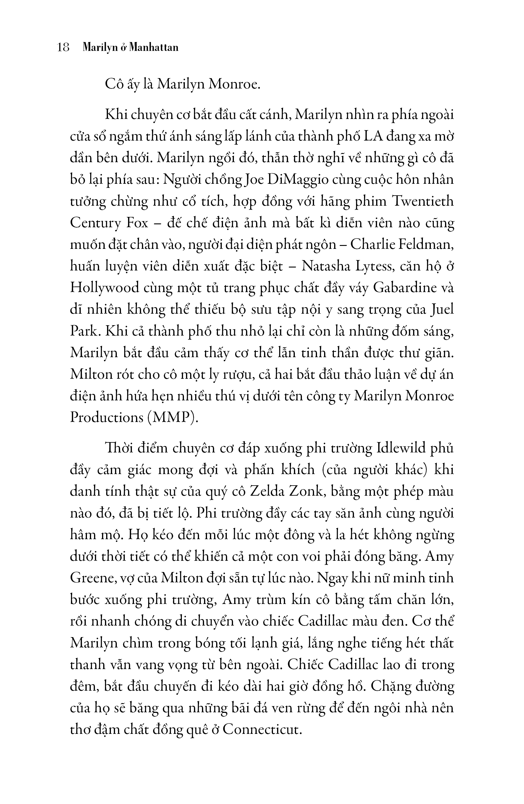 Tác phẩm của tác giả Elizabeth Winder đưa chúng ta quay trở lại cột mốc tháng 11 năm 1954 khi Marilyn bước lên chuyến bay đặc biệt để trốn chạy khỏi Hollywood. Đó được xem là thời điểm vàng son của nữ minh tinh khi hai bộ phim Gentlemen Prefer Blondes và How to Marry a Millionaire tạo nên cơn sốt doanh thu phòng vé, mang lại lợi nhuận khổng lồ cho hãng phim Fox. Marilyn vụt sáng trở thành minh tinh được truyền thông săn đón nhất. Thay vì vui mừng, nữ minh tinh của chúng ta dần suy sụp bởi Hollywood khắc nghiệt muốn cô mãi mãi là cô búp bê tóc vàng đóng những vai ngớ ngẩn. Thêm vào đó, cuộc hôn nhân không hạnh phúc với người chồng thứ hai Joe DiMaggio càng khiến Marilyn cùng quẫn và dĩ nhiên không thể thiếu “mũi dao” sắc lẻm mà báo giới cứa vào tâm hồn mỏng manh của nữ minh tinh. Marilyn đã có quyết định mang tính lịch sử, trốn chạy khỏi Hollywood đến Manhattan để trở thành một nghệ sĩ bằng cách bước chân vào lớp học kịch nghệ Actors Studio.