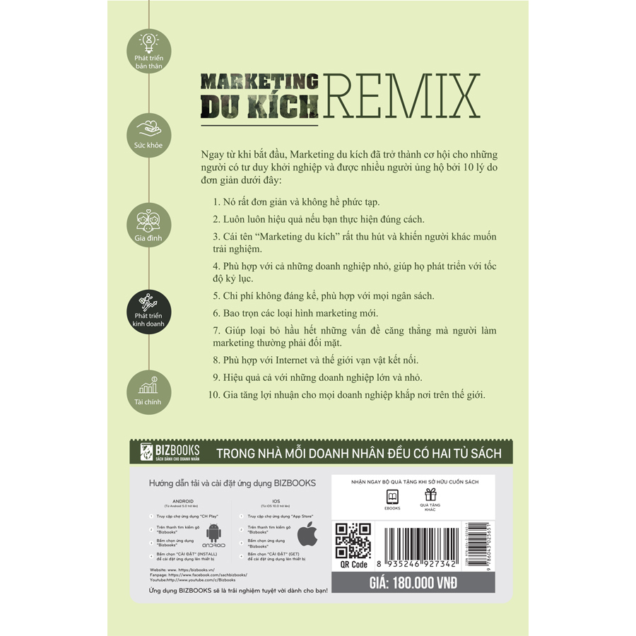 Không đơn giản chỉ là một khái niệm tổng thể Marketing du kích, ở phần 2 tác giả đưa đến cho các chủ doanh nghiệp, các marketer một bản Remix với vô vàn kiến thức chuyên sâu. Giúp bạn áp dụng trong việc làm bán lẻ du kích, giao dịch kiểu du kích, truyền thông, viết content, lợi nhuận du kích… với những câu từ và dẫn chứng hấp dẫn và thực chiến.