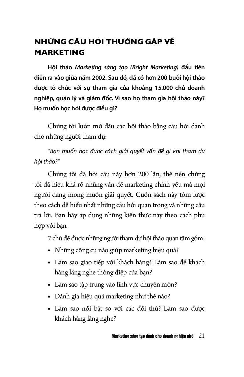 Có lẽ bạn từng cảm thấy không thỏa mãn khi đọc những cuốn sách hay website của các chuyên gia marketing vì những điều họ viết quá khó hiểu, những giải pháp họ đưa ra quá tốn kém; tóm lại là không phù hợp với doanh nghiệp của bạn.