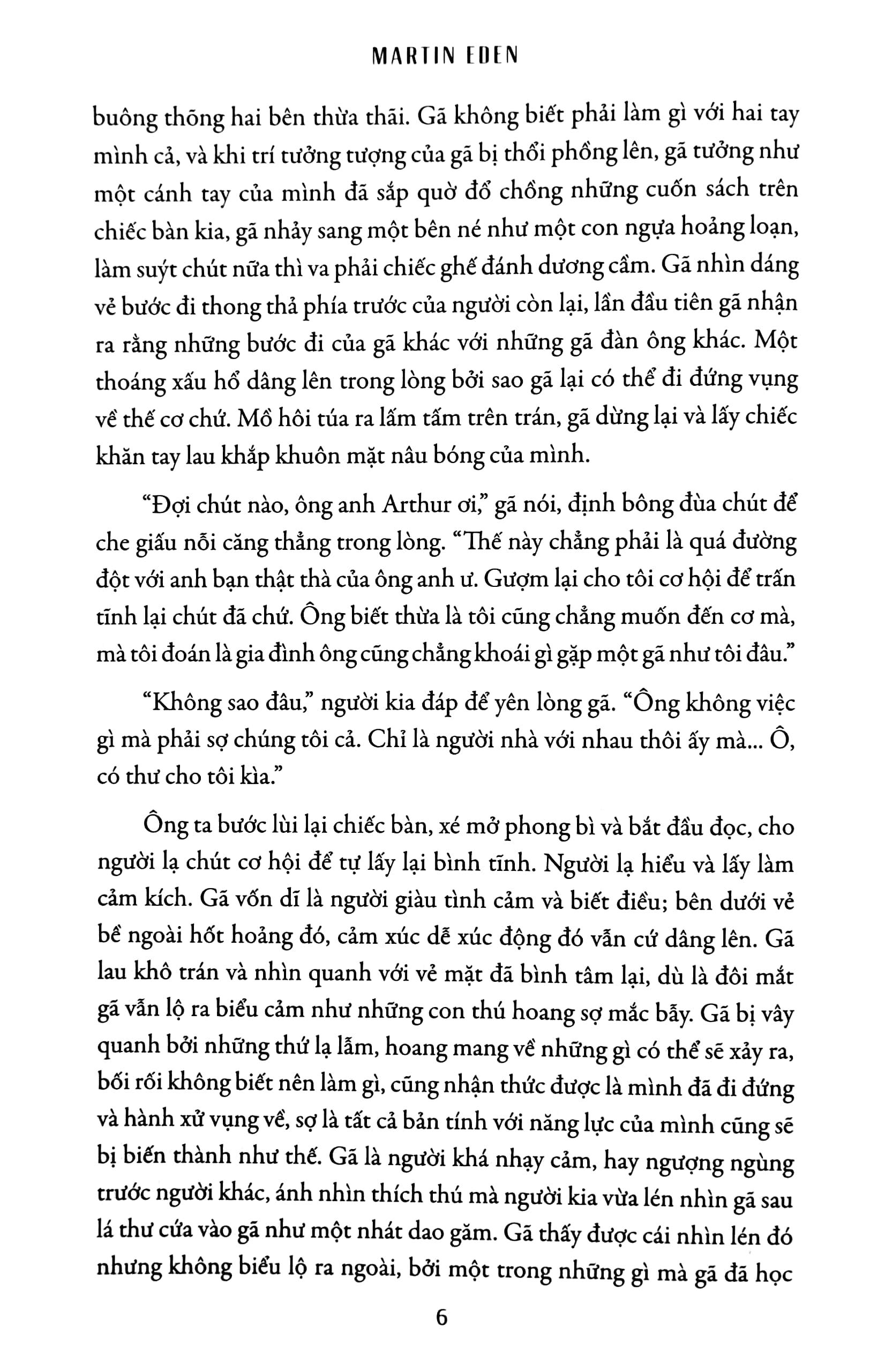 Martin Eden là một trong những tiểu thuyết nổi tiếng nhất của Jack London, ra đời năm 1908. Tác phẩm mang đậm giá trị hiện thực khi phản ánh về “giấc mơ Mỹ” - đi từ nghèo hèn lên đài danh vọng, đồng thời cho thấy những căng thẳng nội tâm của nhân vật chính Martin Eden khi trở thành người của tầng lớp trên nhưng lại cố chối bỏ các giá trị vật chất của tầng lớp quý tộc, qua đó, mang tới cho độc giả một câu chuyện về cuộc sống vô cùng ý nghĩa và sâu sắc.