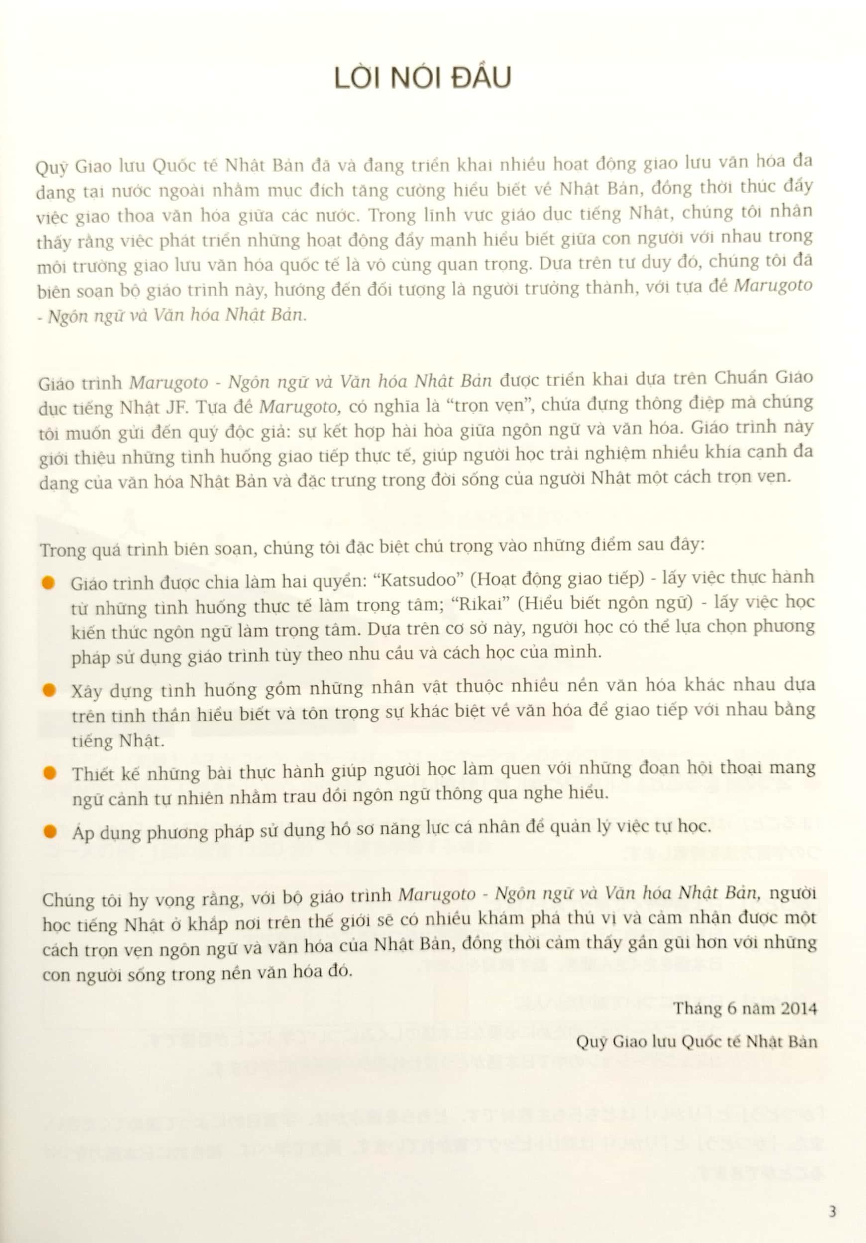 Mong rằng, với bộ giáo trình Marugoto - Ngôn ngữ và Văn hóa Nhật Bản, người học tiếng Nhật ở khắp nơi trên thế giới sẽ có nhiều khám phá thú vị và cảm nhận được một cách trọn vẹn ngôn ngữ và văn hóa của Nhật Bản, đồng thời cảm thấy gần gũi hơn với những con người sống trong nền văn hóa đó.