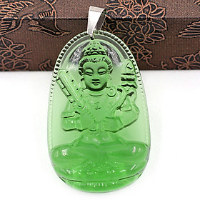 Mặt Phật Bà đứng Cẩm Thạch xanh trắng lí - Chất liệu: Ngọc Cẩm Thạch tự nhiên. - Màu sắc: Xanh lí phớt trắng - Kích thước: ngang 49mm, cao 23mm, dày 4mmx8mm - Mã kiểm định: 86691 - Tiêu chuẩn