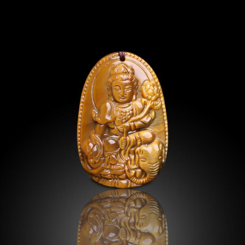 Mặt dây chuyền phật bản mệnh đá mắt hổ vàng nâu - Hợp mệnh thổ, mệnh kim | Ngọc Quý Gemstones |