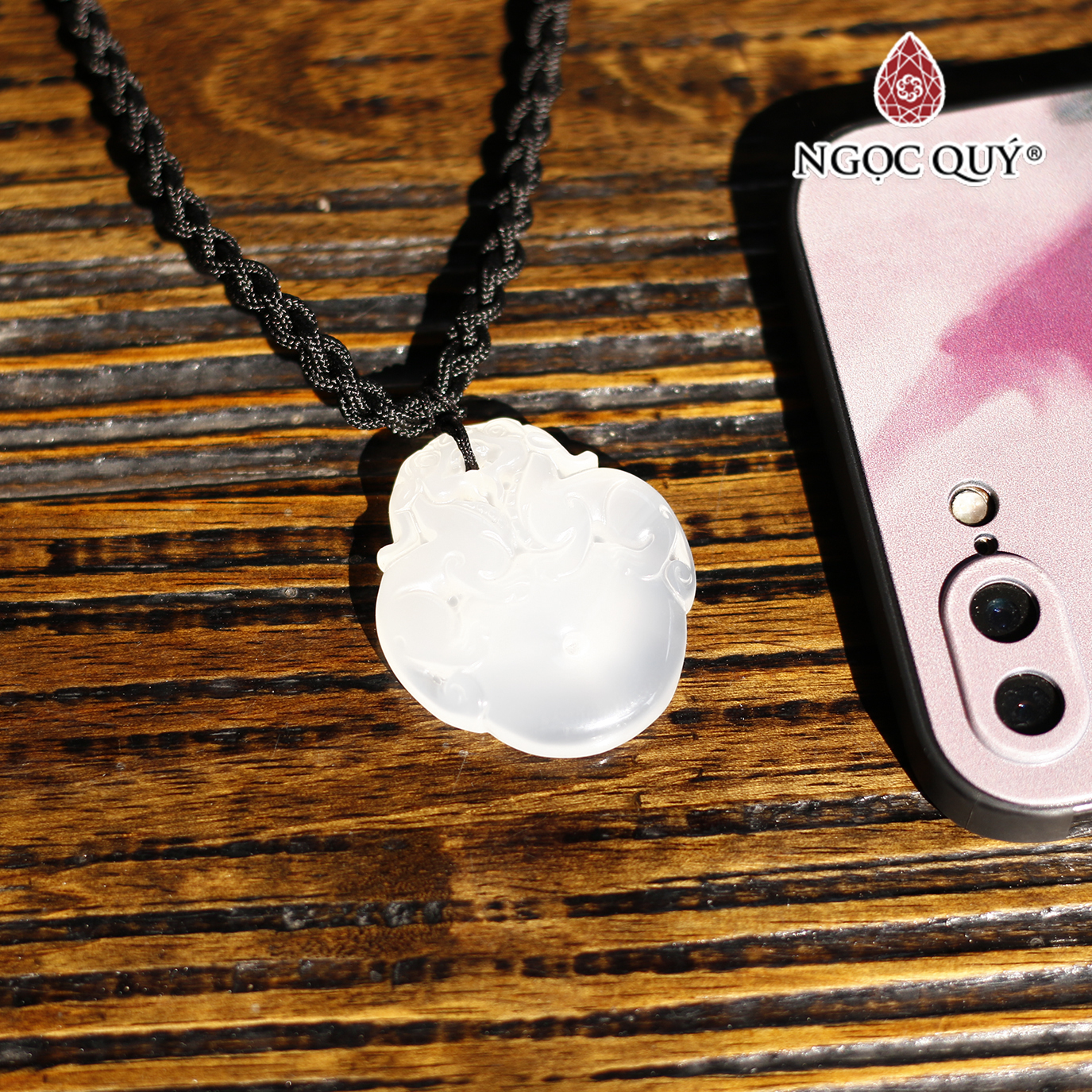 Mặt dây chuyền đá mã não trắng - Hợp mệnh kim, thủy | Ngọc Quý Gemstones |