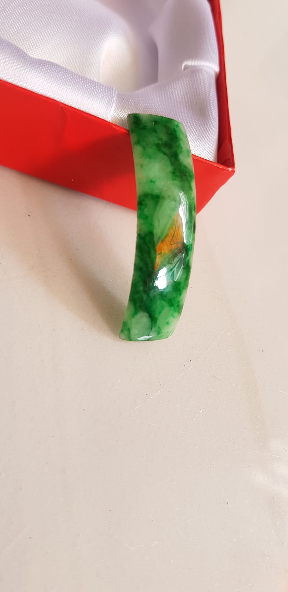 ✨Mặt Lắc Tay miếng cong dài chữ nhật đá cẩm thạch tự nhiên xanh lý sơn thủy đậm vân bóng đẹp Size Dài 41mm x ngang 11mm x dầy 3mm Nữ lên lắc tay bằng vàng đeo sang đẹp món quà tặng Mẹ, người thân ý nghĩa ạ