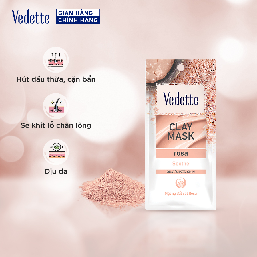 Mặt nạ đất sét sạch sâu dịu nhẹ Ngọc Trai Vedette Clay Mask Pearl thấm hút tối đa lớp bụi bẩn và bã nhờn từ sâu trong lỗ chân lông, giữ da luôn thoáng sạch