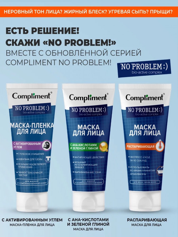 ✨Mặt nạ đất sét xông hơi nóng ấm Compliment No Problem Steaming Face Mask 80ml sạch sâu giảm mụn sáng da