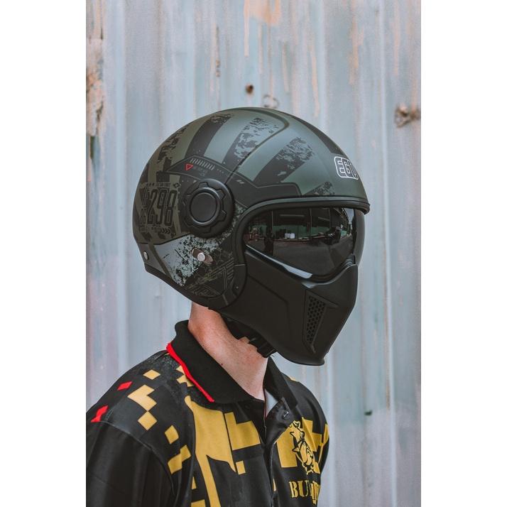 Mũ 3/4 EGO E-5 lắp kính chắn ngoài và mặt nạ: