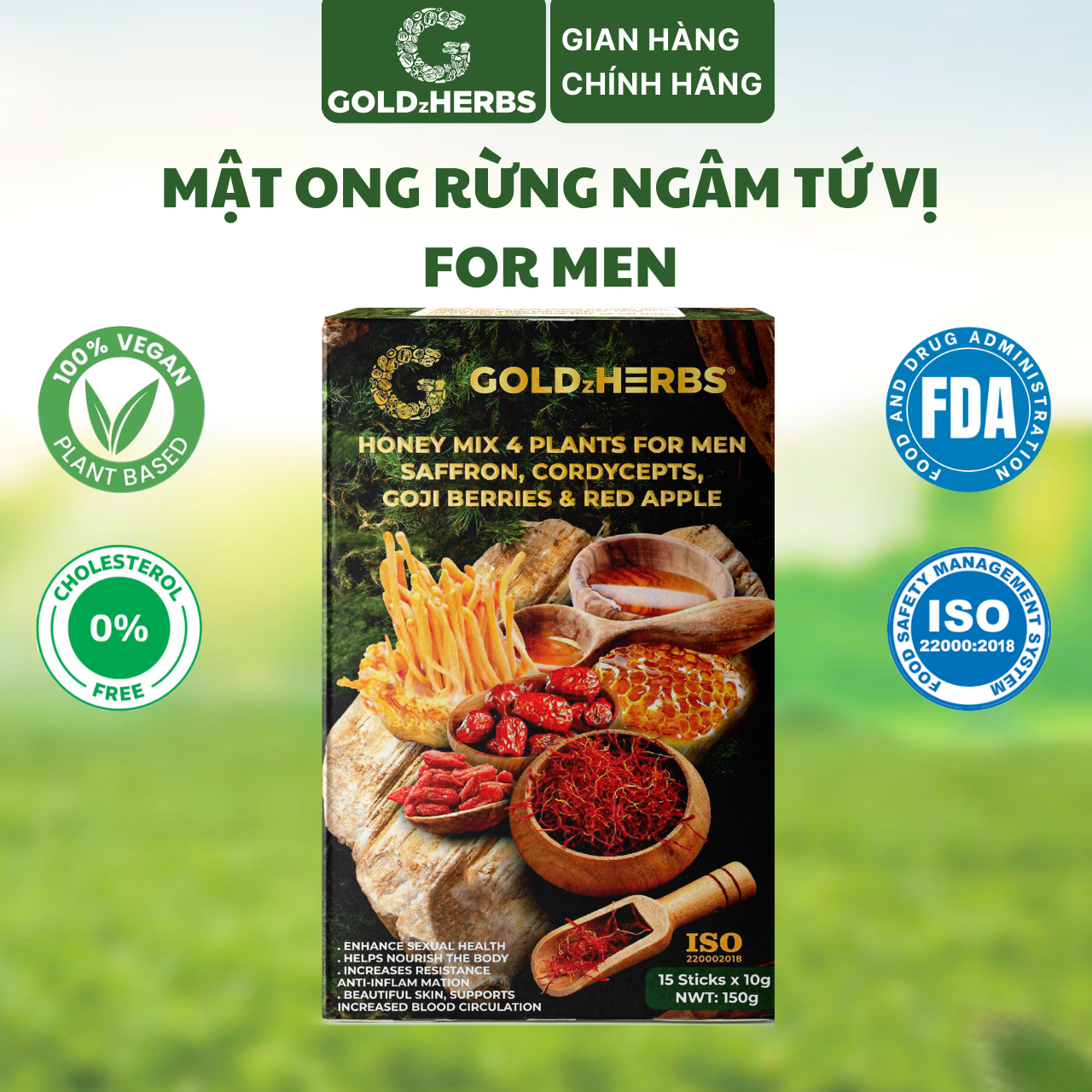 ✨Mật ong rừng ngâm tứ vị For Men GoldzHerbs, 100% mật ong nguyên chất – Hũ 300g/ Hộp 15 gói