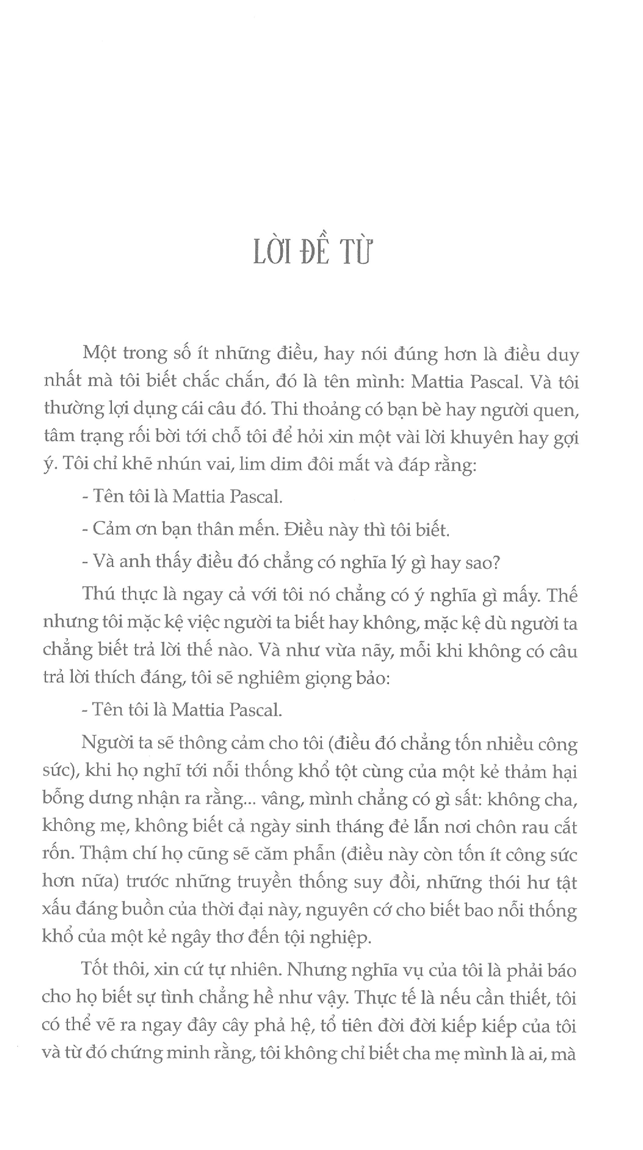 Người quá cố MATTIA PASCAL - Lời nói đầu