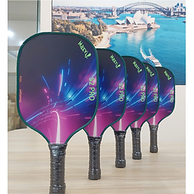 Vợt Pickleball Carbon T700 PRO mặt vợt phủ carbon khối lượng siêu nhẹ mặt nhám bám bóng Thông Số Kỹ Thuật: Chất liệu: Gỗ + nhựa Kích thước vợt cầu vồng: 400 x 220 x