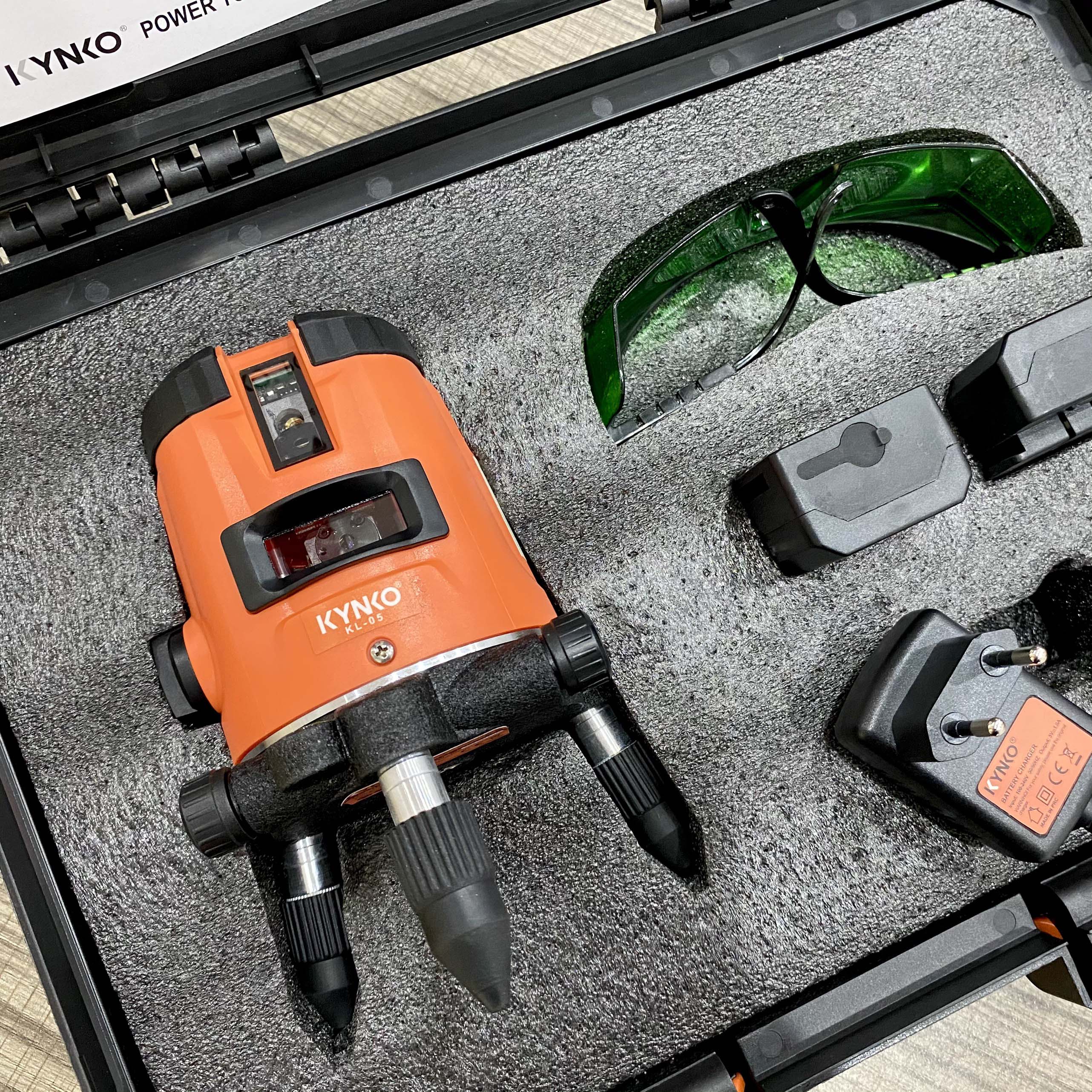 Máy cân bằng Laser 5 tia - KL05 Máy sử dụng bóng laser Sharp nhập khẩu chính hãng. Công nghệ tia xanh lá tinh khiết, hiển thị rõ, mạnh, độ mỏng tia chỉ 1mm.