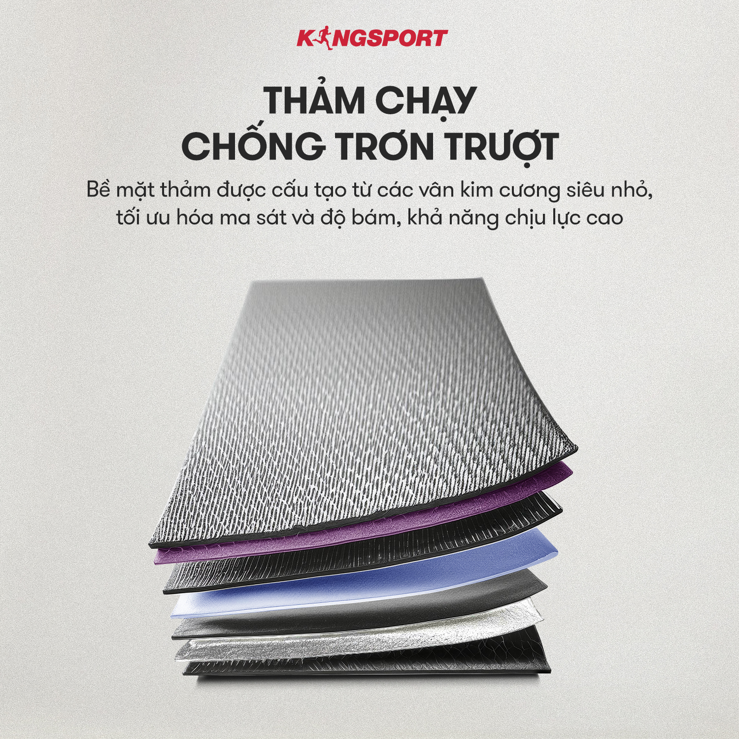 ️ Thảm chạy Diamond nhiều lớp chống ồn và trơn trượt, rộng rãi lên đến 1260x420 mm
