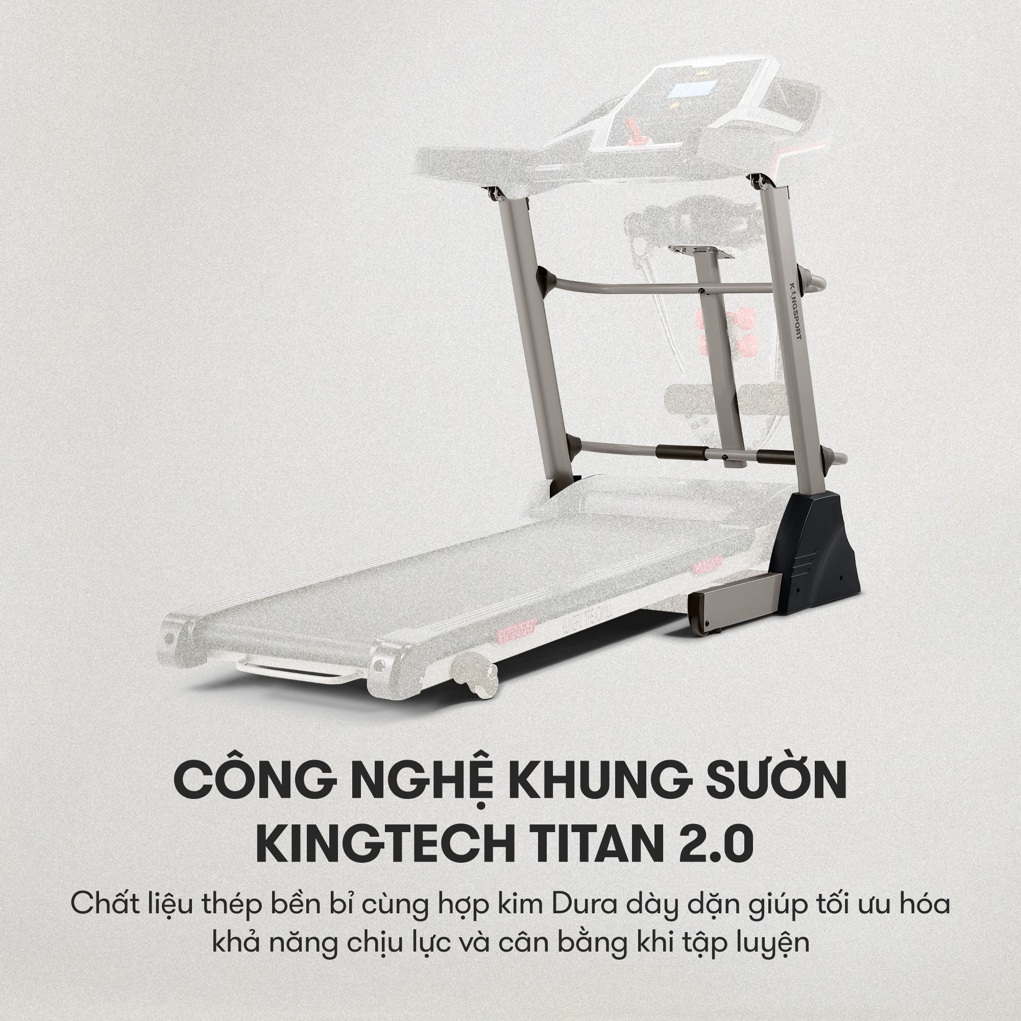 Máy chạy bộ Kungfu đa năng - Vui sức trẻ vươn sức khỏe ️ Thiết kế sang trọng và hiện đại phù hợp với mọi không gian ️ Khung sườn Kingtech Titan 2.0 mạnh mẽ