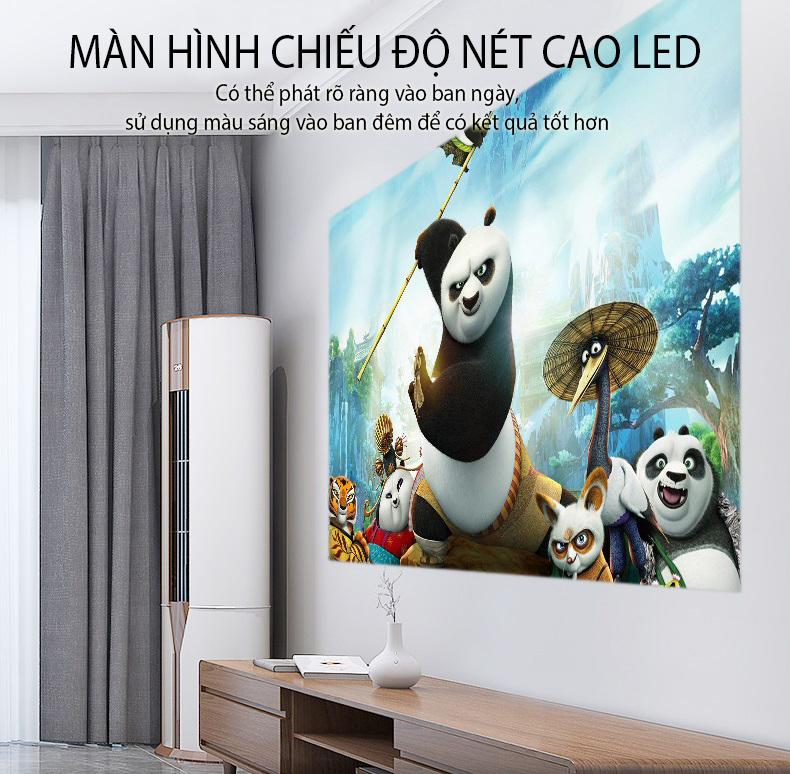 Máy chiếu siêu nhỏ có thể biến căn phòng của bạn thành một rạp hát cực chất, bạn có thể xem phim hay hát karaoke, máy chiếu rất tiện lợi khi mang theo. Ngoài ra bạn có thể cùng bạn bè xem phim giải trí. Nó cũng có thể giúp bảo vệ mắt trẻ em, ngăn việc trẻ em dán vào màn hình nhỏ và gây ra cận thị... Không cần dùng phông chiếu