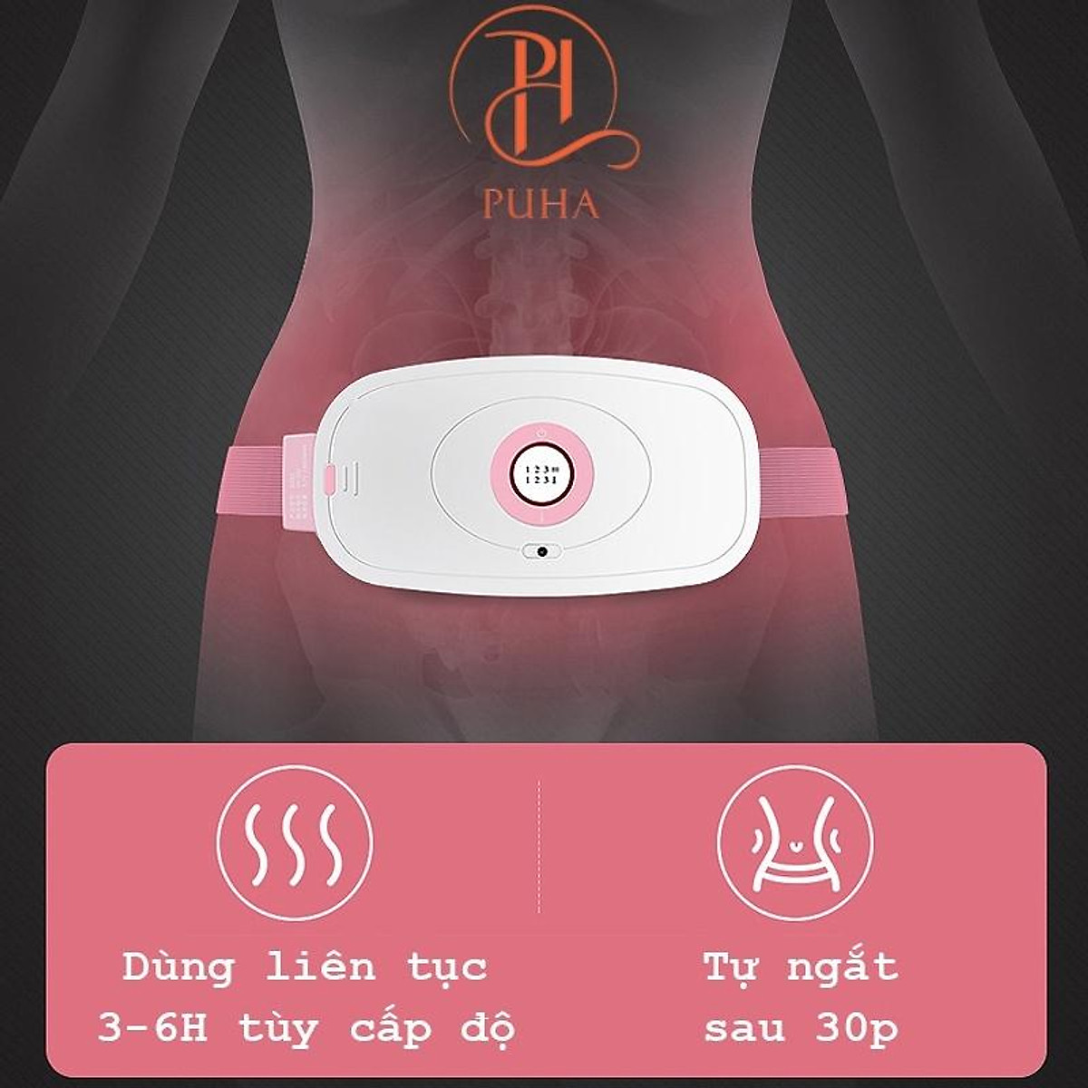 Máy chườm nóng hỗ trợ giảm đau bụng kinh PUHA, có 5 mức nhiệt, Pin 3600MAH , sạc UBS, món quà ý nghĩa tặng người yêu Máy chườm nóng bụng kinh nguyệt PUHA có full