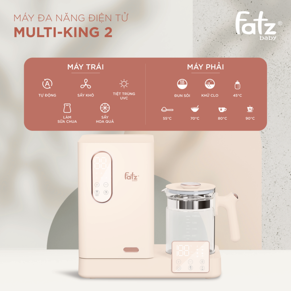 MÁY ĐA NĂNG ĐIỆN TỬ FATZ BABY (TIỆT TRÙNG UVC LED/ SẤY KHÔ/ LÀM SỮA CHUA/ ĐUN & HÂM NƯỚC) MULTI-KING 2 FB9600RS Là một bản nâng cấp Multi-king 1, máy đa năng điện tử