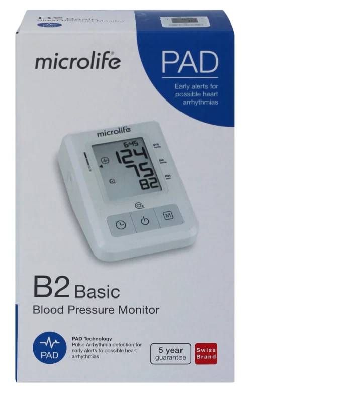 Công nghệ PAD mang lại khả năng quan trọng để cảnh báo sớm các rối loạn nhịp mạch có thể dẫn đến các biến chứng tim mạch, mà có nguy cơ rất cao đối với bệnh nhân tăng huyết áp mạn tính.  Máy đo huyết áp điện tử Microlife B2 Basic thế hệ mới đơn giản, dễ đo