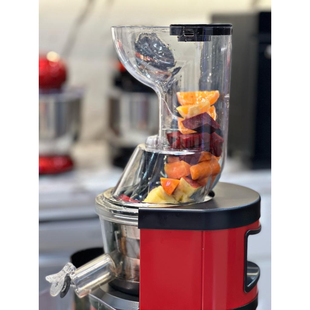Ép kiệt hơn, giàu Vitamin và nhiều hương vị hơn! Đường kính khoang ép lớn lên đến 130mm, giúp ép nguyên quả dễ dàng mà không cần cắt nhỏ. Tốc độ quay chậm chỉ 40