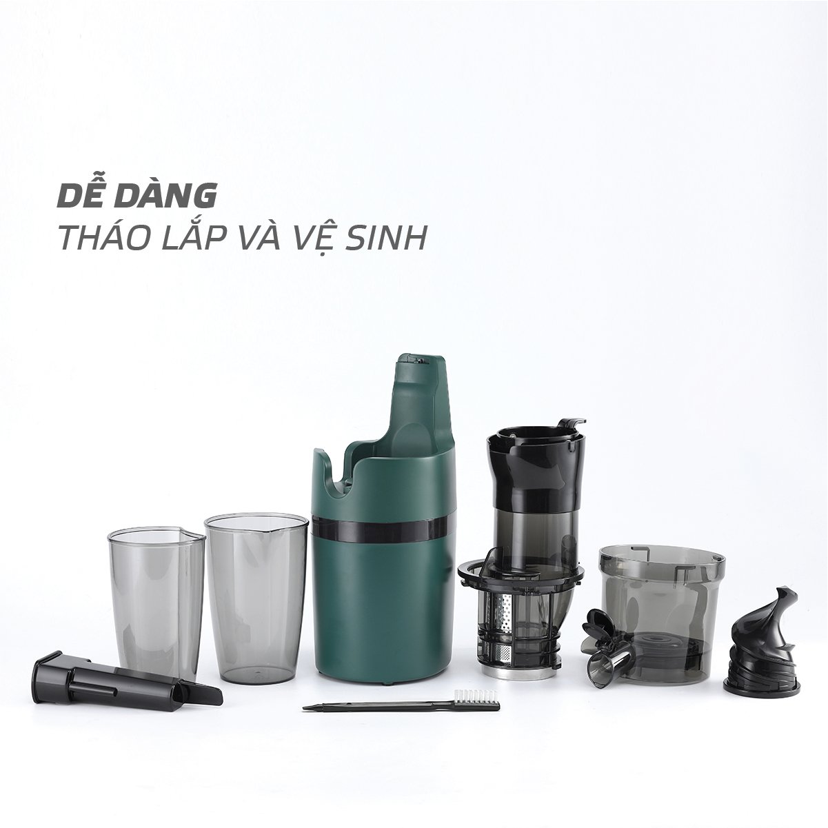 ƯU ĐIỂM SẢN PHẨM: - Động cơ 100% bằng đồng mạnh mẽ và bền bỉ - Công suất cực lớn 250W giúp nghiền nát các nguyên liệu cứng - Tốc độ ép