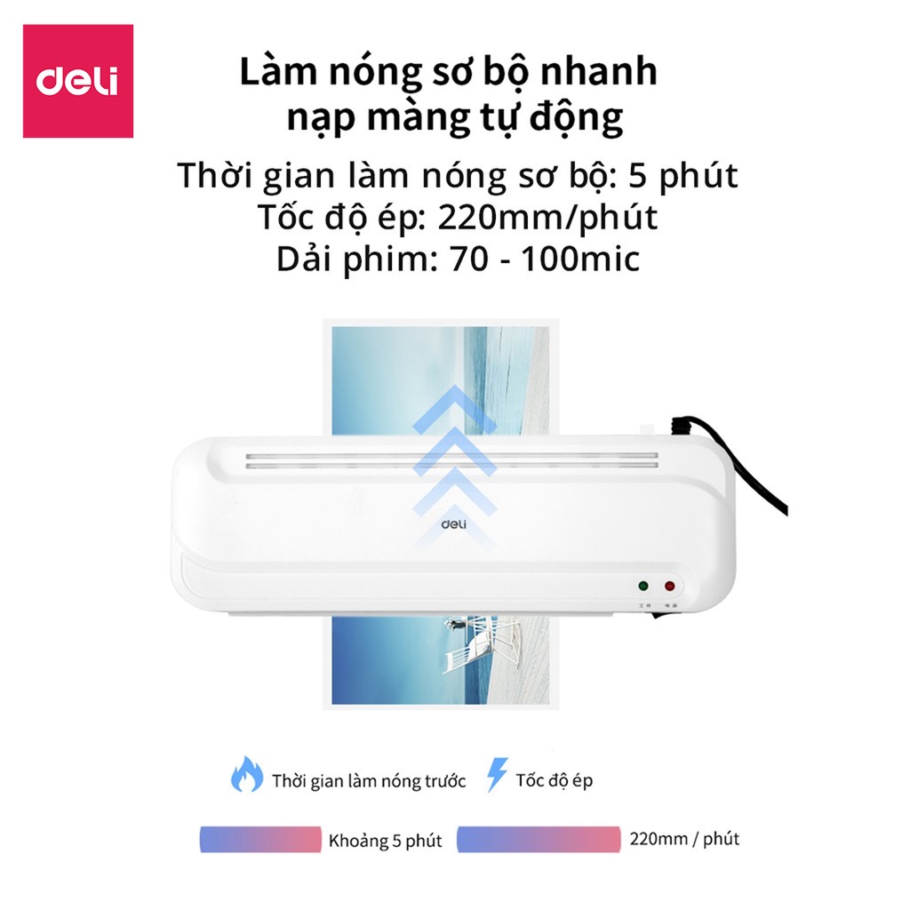 Máy Ép Plastic Khổ A4 Deli Chính Hãng Chuyên Dụng Ép Nhựa Dẻo, Màng Ảnh, Poster An Toàn Dễ Sử Dụng