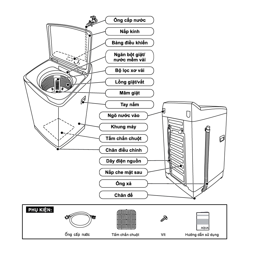 - Freeship toàn quốc, đối với khu vực đảo khách hàng sẽ phải thanh toán thêm phí tàu ra đảo, vui lòng chat với gian hàng để được báo giá. THIẾT KẾ HIỆN ĐẠI, BẢNG ĐIỀU KHIỂN PHÍA SAU Máy giặt Aqua 10 Kg AQW-FR101GT BK mang thiết kế màu đen huyền bí, không kém phần hiện đại, sang trọng. Bảng điều khiển tiếng Việt và núm xoay nằm ở phía sau dễ nhìn, dễ thao tác hơn. KHỐI LƯỢNG GIẶT 10 KG ĐÁP ỨNG NHU CẦU GIẶT GIŨ CỦA GIA ĐÌNH TỪ 5 - 7 NGƯỜI Máy giặt Aqua có khối lượng giặt lên tới 10 kg nên rất thích hợp cho gia đình đông thành viên từ 5 - 7 người hoặc những gia đình ít người nhưng có nhu cầu giặt giũ cao. 12 CHƯƠNG TRÌNH GIẶT PHỤC VỤ TỐT NHU CẦU GIẶT GIŨ CỦA GIA ĐÌNH Được tích hợp 12 chương trình giặt, do đó máy giặt Aqua có thể đáp ứng tốt nhu cầu giặt giũ của người sử dụng như giặt mạnh, giặt nhanh, giặt thơm,... Đồng thời bạn cũng có thể lựa chọn chương trình giặt phù hợp với từng chất liệu vải khác nhau như đồ cotton, đồ thể thao, đồ trẻ em,... (xem thêm tại bảng thông số kỹ thuật) lựa chọn chương trình giặt phù hợp với từng loại vải giúp quần áo bền lâu với thời gian hơn. NGĂN NGỪA NẤM MỐC, VI KHUẨN TRONG LỒNG GIẶT NHỜ MÂM GIẶT KHÁNG KHUẨN ABT Mâm giặt kháng khuẩn ABT được phun một chất liệu đặc biệt có khả năng kháng khuẩn, ngăn chặn sự sinh sôi của vi khuẩn lên tới 99.99%. Nhờ đó bạn hoàn toàn có thể yên tâm khi sử dụng máy giặt cửa trên này. LỒNG GIẶT PILLOW BẢO VỆ QUẦN ÁO TRÁNH HIỆN TƯỢNG XƠ VẢI MẮC VÀO LỖ THOÁT NƯỚC Lồng giặt Pillow được thiết kế đặc biệt với bề mặt hình gối và các lỗ thoát nước rất nhỏ chỉ 2.5 mm, đồng thời sử dụng chất liệu thép không gỉ. Do vậy quần áo dễ dàng được giặt sạch nhờ tia nước phun ra mạnh mẽ và tránh gặp phải hiện tượng sợi vải mắc vào lỗ thoát nước như những chiếc máy giặt thông thường khác. TIẾT KIỆM NƯỚC NHỜ CHỨC NĂNG WATER RESERVE Máy giặt Aqua 10kg tích hợp chức năng dự trữ nước Water Reserve được thiết kế đặc biệt. Ở lần xả cuối cùng, chương trình giặt không chuyển sang chu trình vắt tiếp theo mà tự động dừng lại và giữ lại nước cho mục đích khác như lau nhà, đi vệ sinh hoặc cho lần giặt tiếp theo. Vì vậy giúp người dùng tiết kiệm nước và chi phí hiệu quả. VỆ SINH LỒNG GIẶT HẠN CHẾ VI KHUẨN, NẤM MỐC Máy giặt sử dụng lâu ngày sẽ dễ tích tụ vi khuẩn, chất bẩn. Với sản phẩm này, bạn có thể lựa chọn tính năng vệ sinh lồng giặt để loại bỏ vi khuẩn và cặn bẩn bám trên lồng giặt, góp phần đảm bảo chất lượng nước giặt tốt nhất cho quần áo. Nhìn chung, máy giặt Aqua 10 Kg AQW-FR101GT BK là một sản phẩm phù hợp với những gia đình đông người từ 5 - 7 thành viên. Việc sở hữu những công nghệ, tiện ích nổi bật như mâm giặt kháng khuẩn ABT, chức năng dự trữ nước,... thì đây sẽ là chiếc máy giặt đáng cân nhắc cho gia đình.