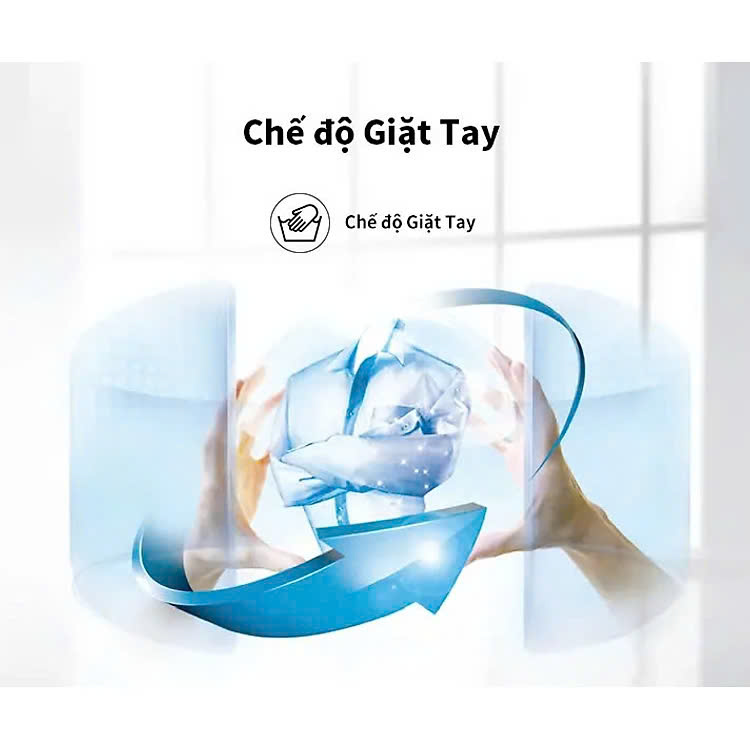 - Chế độ Giặt Tay: Để mô phỏng hoạt động giặt tay của con người, công nghệ Giặt Tay của máy giặt Hisense có thể tự động điều chỉnh cánh quạt quay theo chiều thuận và lồng giặt đảo chiều ngược lại, đạt được hiệu quả giặt sạch kỹ lưỡng mà không gây hại cho sợi vải.