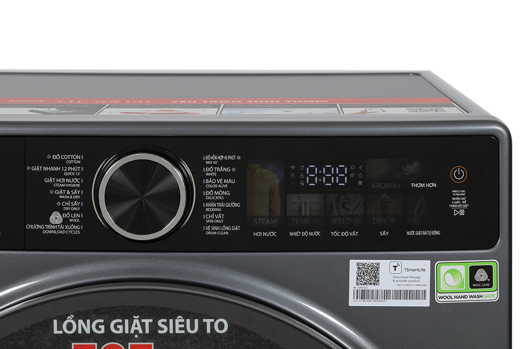 là giải pháp giặt sấy hữu hiệu với một bản điều khiển trung tâm duy nhất. Sản phẩm được tích hợp 8 chương trình giặt, 10 chương trình sấy được cài đặt sẵn, giúp giặt