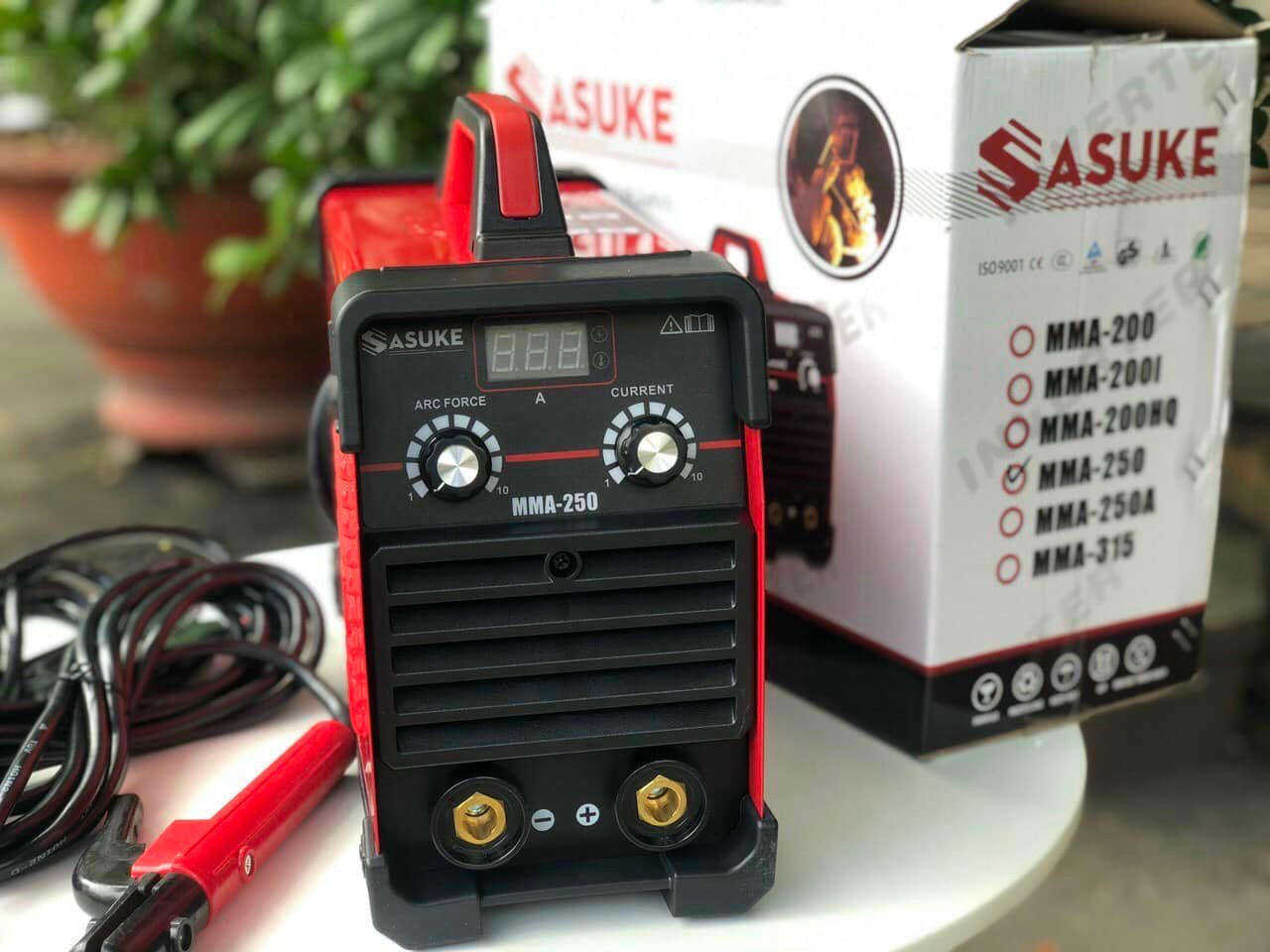 Máy hàn điện tử Sasuke MMA 250A đi kèm kìm hàn, kẹp mass, búa gõ xỉ, mặt nạ hàn, kính hàn. Với dòng hàn lên tới 250A và sử dụng loại que hàn 1.6mm - 4.0mm chiếc máy hàn MMA 250A sẽ đáp ứng được nhu cầu hàn vật liệu cho công trình lớn, xưởng cơ khí, nhà thép tiền chế.