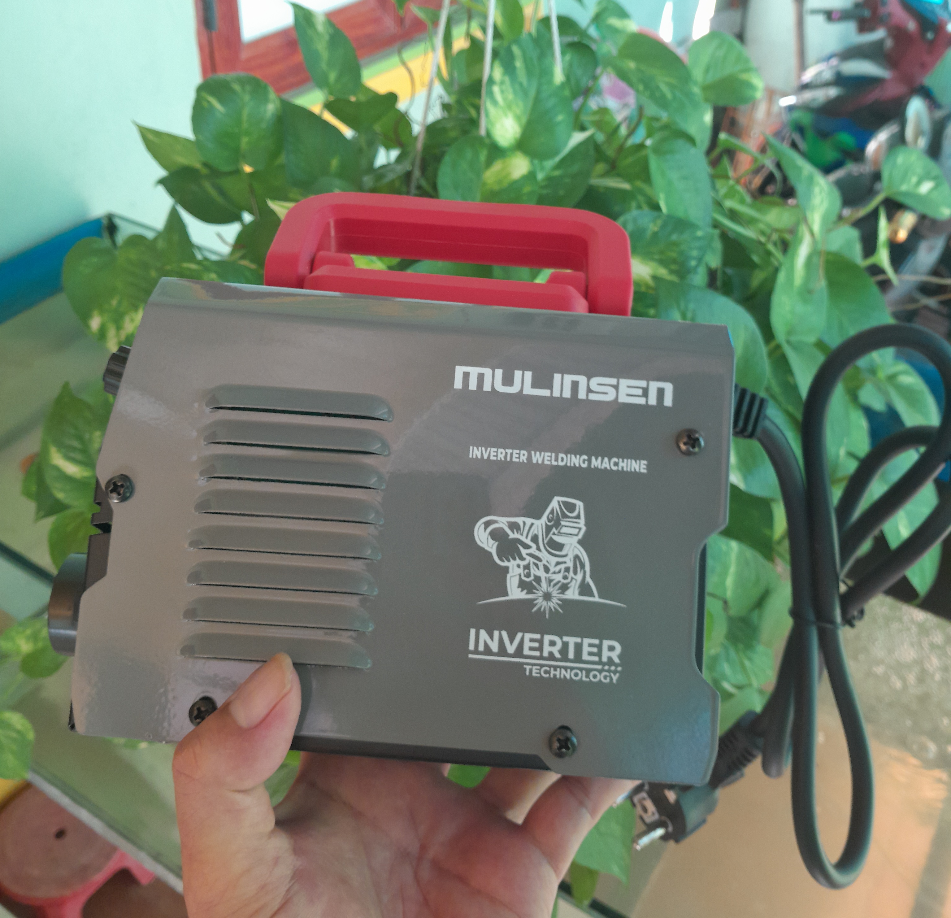 THÔNG TIN SẢN PHẨM 1pha-230V. 6,9KVA Dòng hàn ra 20-160A Kìm hàn với 1,5M cáp 16mm² Hàn que 3,2 liên tục Kẹp mass với 1,5M cáp 16mm² Hàn que 4,0 đính Trọng lượng 5,5kg Phụ