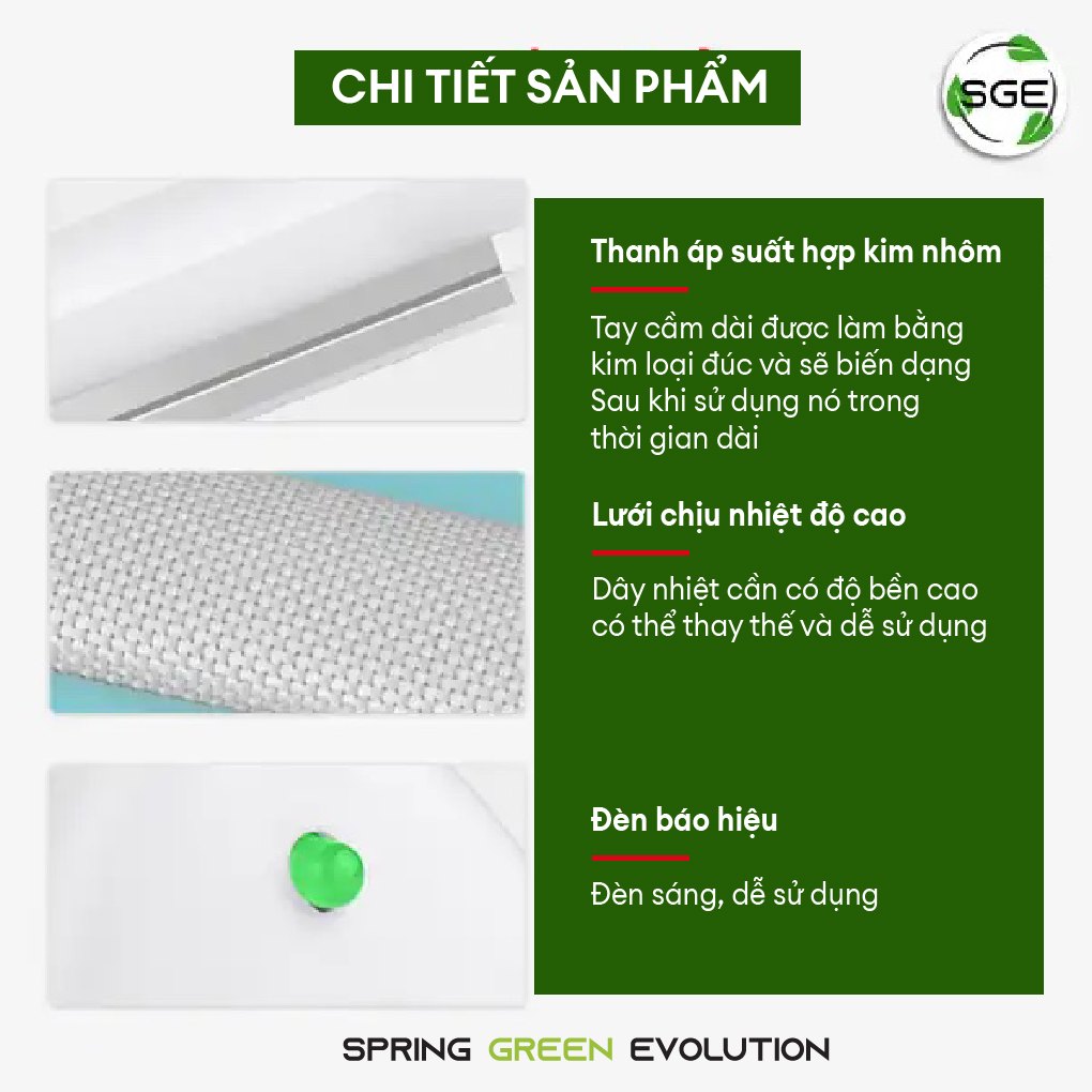 không kén túi không cần chờ làm nóng Tự động hàn và ngắt theo thiết lập thời gian Thân vỏ hợp kim nhôm (bền và tản nhiệt tốt hơn) Bảo hành 12 tháng Thông số