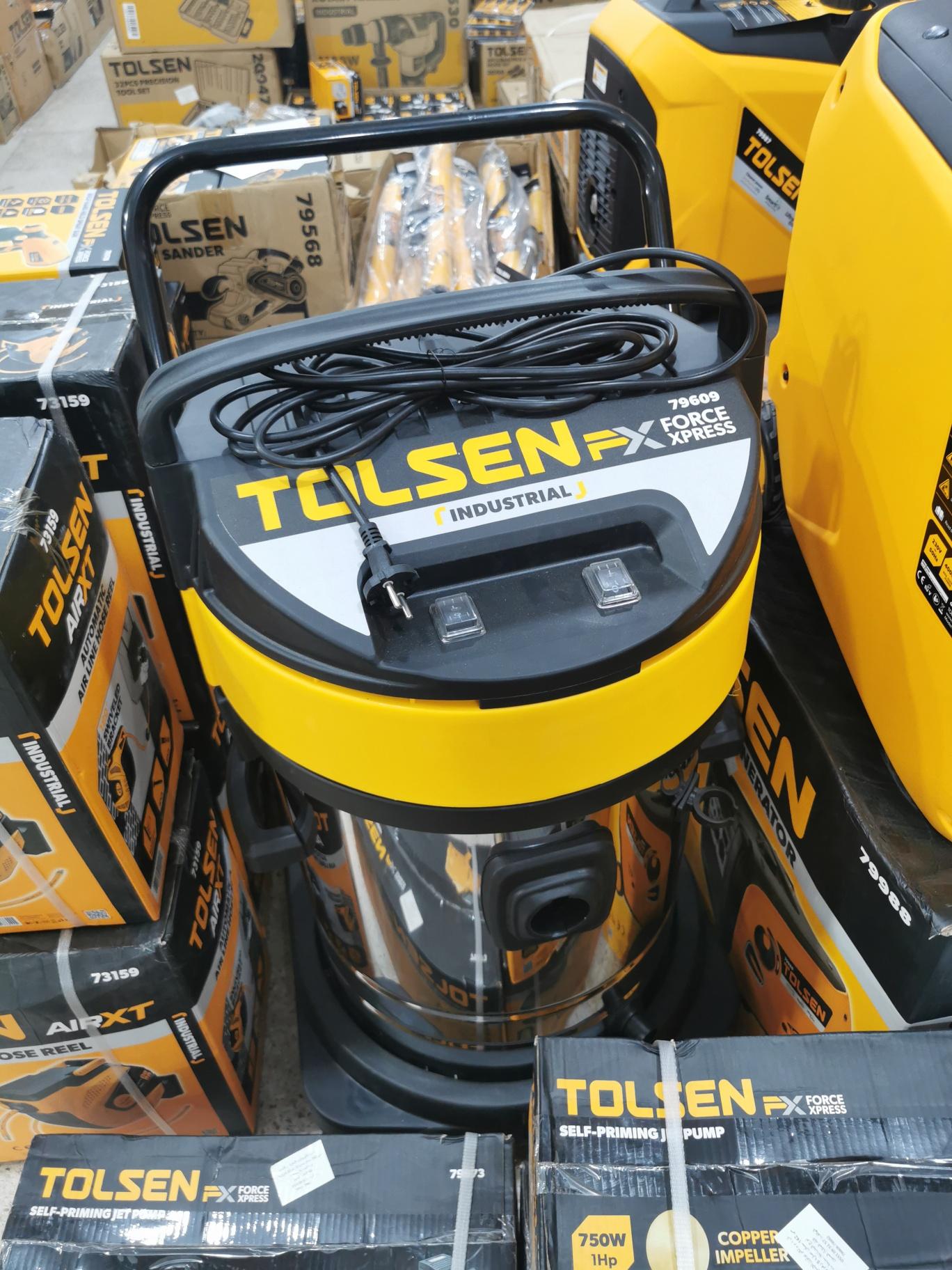 Thương hiệu Tolsen chuyên thiết kế, sản xuất, lắp ráp, cung cấp các thiết bị và dụng cụ công nghiệp dân dụng cỡ lớn và các loại dụng cụ cầm tay đa năng chuyên nghiệp nổi tiếng về chất lượng và hậu mãi tuyệt vời. Các công cụ TOLSEN tập trung vào việc chế tạo các dụng cụ cầm tay chất lượng chuyên nghiệp và các sản phẩm phần cứng liên quan. Tất cả các sản phẩm của TOLSEN đều được kiểm soát chặt chẽ ở mọi bước trong quá trình thiết kế, sản xuất, đóng gói và kiểm soát chất lượng. Các công cụ TOLSEN tin rằng các công cụ chất lượng đề cập đến khả năng sử dụng, hiệu quả và hiệu suất Tolsen có phạm vi sản phẩm khá rộng rãi với trên 2000 sản phẩm bao gồm đủ dụng cụ cầm tay, dụng cụ cơ khí, dụng cụ buộc chặt, dụng cụ cắt, dụng cụ đo, dụng cụ vẽ, vật phẩm PPE, phụ kiện dụng cụ điện, túi và dụng cụ cách điện, Thông số kĩ thuật -Mã sản phẩm: 79609 -Thương hiệu: TOLSEN -Xuất xứ: Trung Quốc -Hút ướt và khô -Công suất đầu vào: 2x1000W -Điện áp: 220-240V -Tần số: 50 / 60Hz -Động cơ dây đồng -Bể thép không gỉ -Dung tích bụi: 70L -Lưu lượng không khí: 3m³ / phút -Áp suất hút chân không: 18KPa -Ống mềm 2,5m -2 ống kim loại -2 chiếc bàn chải vuông 40cm -1pc lọc bọt biển -1 bộ bàn chải đầu tròn -1 cái miệng lớn phẳng -Hộp mực cột 1pc -Tổng chiều dài dây 2,3m -Bộ lọc HEPA -Giặt ướt và giặt khô -Đóng gói: thùng màu