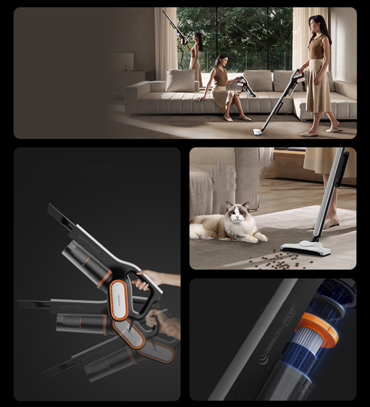 Thông số kĩ thuật: Thương hiệu: Deerma Model: DEM-CM980 Điện áp đầu vào: 220V~50Hz Công suất định mức: 450W Lực hút: >13kPa Trang bị: Tia UV khử trùng, sấy khô khí nóng 60°C Độ ồn