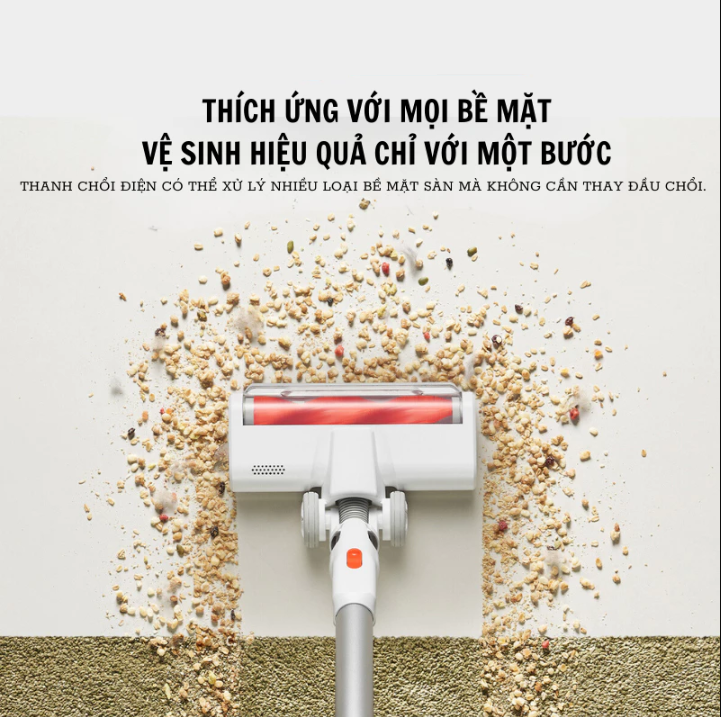 • Thanh bàn chải: chế độ Turbo 15 phút, chế độ tiêu chuẩn 40 phút. Thích hợp sàn nhà cứng, gạch lát, thảm ngắn, thảm sàn.