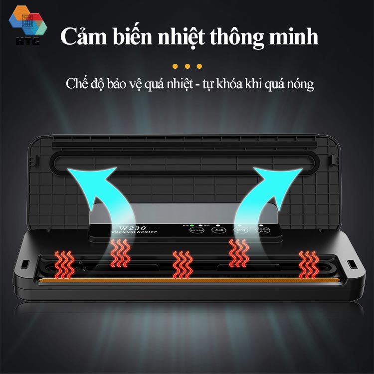 Bảo quản chân không thực phẩm gia đình tiện lợi Kéo dài thời gian tươi mới của thực phẩm, cho chế biến tươi ngon đảm bảo sức khỏe Chống nấm mốc, vi khuẩn, kìm hãm quá trình oxy hóa của thực phẩm x5 lần thời gian bảo quản thực phẩm thông thường. Máy hút chân không thực phẩm W230 Sự lựa chọn tin dùng của các gia đình Việt, với hàng loạt tính năng nổi trội Thiết kế thế hệ mới, với hai chế độ hàn, khô và ướt, giúp sử dụng dễ dàng với các thực phẩm khô và ướt khác nhau Sở hữu tính năng hút chân không tự động sau một lần nhấn nút, máy hút chân không thực phẩm W230 còn được tích hợp tính năng hàn miệng túi độc lập (chỉ hàn) giúp cho việc sử dụng các loại túi dạng cuộn dễ dàng hơn. Vì thế có thể linh hoạt được chiều dài của túi hút khi đóng gói bảo quản chân không thực phẩm gia đình các vật dụng khác nhau Tích hợp tính năng mới trong thế hệ máy hút chân không, với nút bấm Inching - người dùng có thể kiểm soát lực hút của túi, để bảo quản chân không thực phẩm dễ nát hoặc đồ ướt, có thể giữ lại lượng nước đã chế biến mà không muốn hút ra bên ngoài túi Sở hữu đường hàn lớn 30cm, người dùng có thể thoải mái lựa chọn kích thước túi hút để bảo quản chân không thực phẩm gia đình. Ngoài ra, với tính năng hút bằng buồng, người dùng có thể hút cùng lúc các túi nhỏ 1 lúc. Giúp sử dụng 1 cách tiện lợi hơn Tích hợp cảm biến nhiệt dưới dây hàn, và hệ thống làm mát trong buồng Máy hút chân không thực phẩm W230 tự khóa khi sử dụng quá liều cũng như việc hoạt động dây hàn liên tục được làm mát tốt hơn, giúp cho tuổi thọ máy được đánh giá là cao hơn so với các dòng máy mini nhỏ