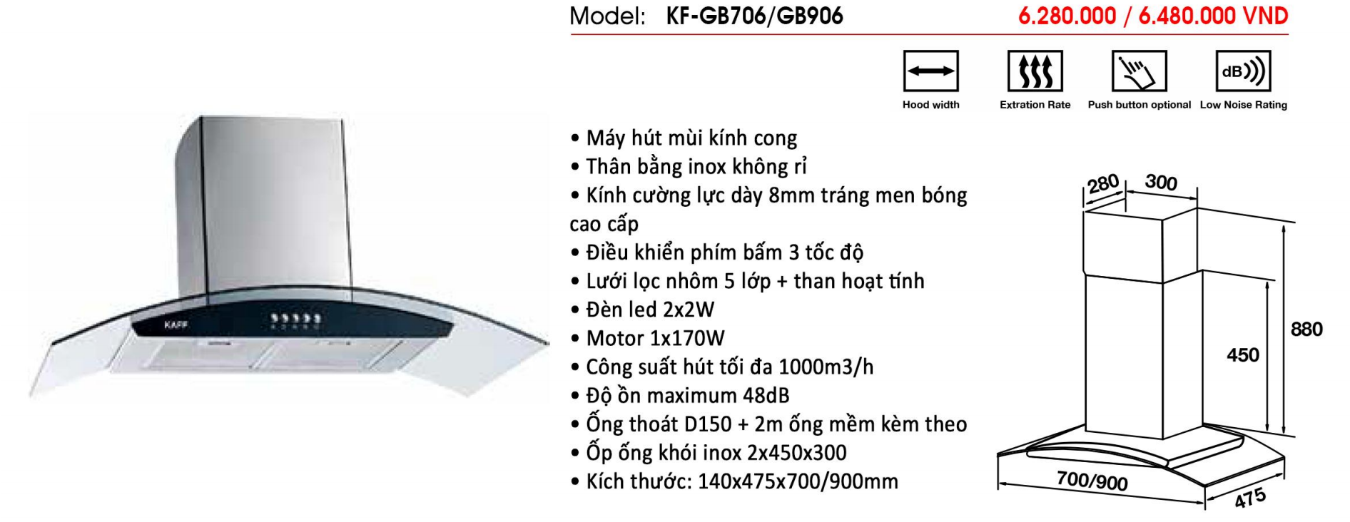 Máy hút mùi bếp KAFF KF-GB706 XẢ KHO 2,750,000đ