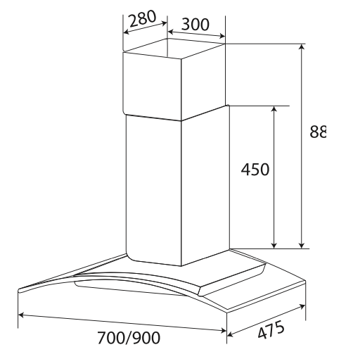 Thông số kỹ thuật: • Máy hút mùi kính cong • Thân máy bằng inox sáng đẹp • Kính cường lực dày 5mm tráng men bóng cao cấp • Điều khiển phím bấm 3 tốc