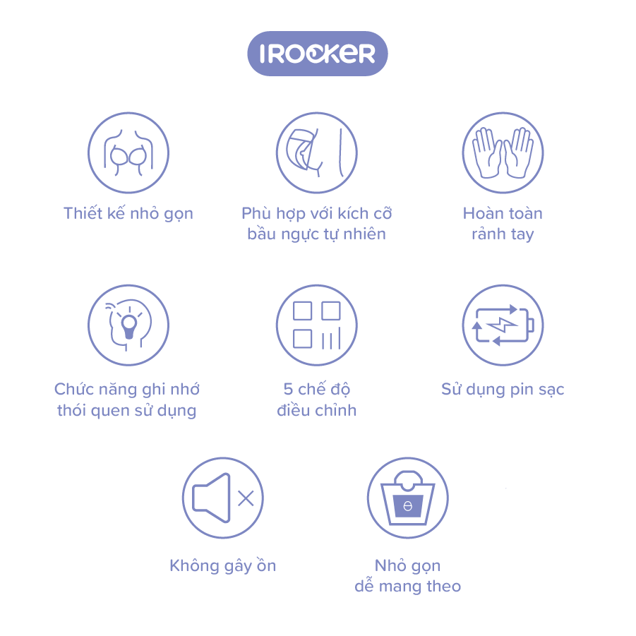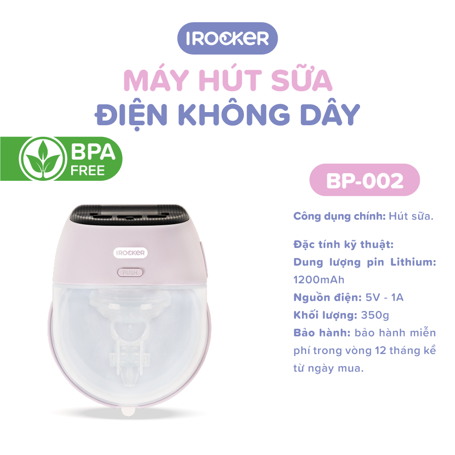 Máy hút sữa bằng điện không dây IROCKER thiết kế nhỏ gọn - BP002 Công dụng chính: Hút sữa Đặc điểm nổi bật: Thiết kế nhỏ gọn Kích thước phù hợp với kích cỡ