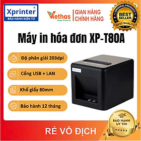 Máy in hoá đơn Xprinter XP - T80A là dòng máy in khổ giấy K80 mới ra mắt của Xprinter. Phù hợp trong các mô hình kinh doanh vừa và nhỏ như siêu thị, shop quần áo, nhà sách, quán café,… Máy in bill từ điện thoại và máy tính thông qua các phần mềm hoặc app bán hàng miễn phí trên thị thường. Thiết kế nhỏ gọn với kích thước 158125124 mm (DWH) Có 3 loại kết nối cho khách hàng chọn lựa theo nhu cầu sử dụng -Cổng USB: in bằng máy tính -Cổng LAN : in bằng điện thoại thông qua dây Lan -Cổng USB + LAN (Ethernet) : in được trên cả điện thoại và máy tính Lưu ý : Để in hóa đơn bằng điện thoại thông qua cổng mạng LAN phải có dây LAN (máy in không kèm dây LAN) khách hàng có nhu cầu sử dụng thì mua kèm dây nhé.
