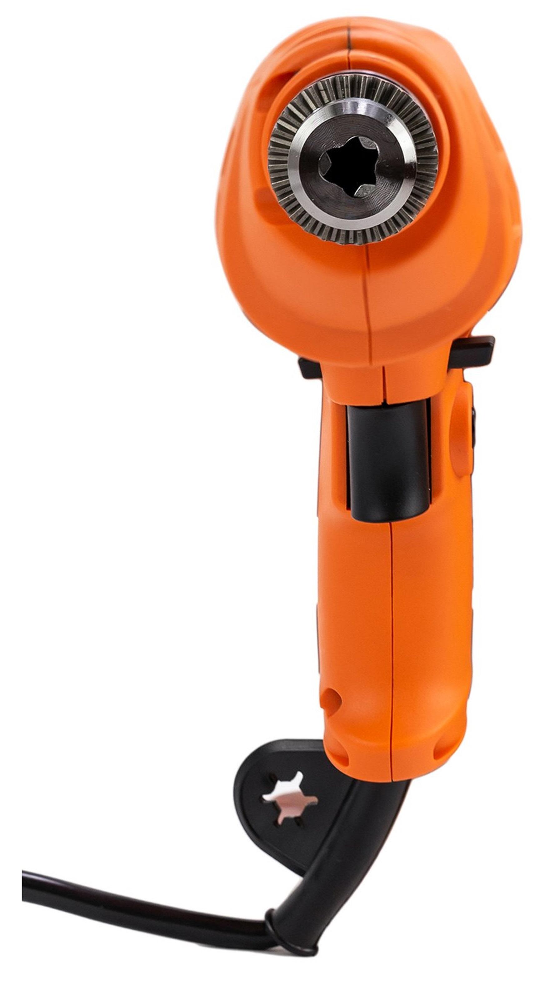 Lớp vỏ bằng nhựa màu cam cao cấp, bền bỉ, cách nhiệt cực tốt, chống điện giật. Ở vị trí tay cầm có bố trí các nút như cò máy, nút bấm đảo chiều, nút giữ duy trì thao tác khoan sẽ giúp ích nhiều cho công việc của bạn.