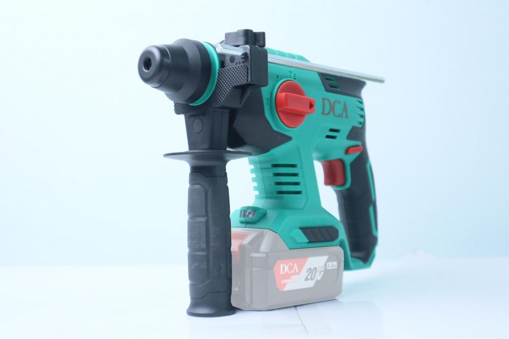 Thân máy khoan bê tông pin 20V DCA AZC22Z sử dụng động cơ không chổi than Brushless với công nghệ Pin Li-On cho tốc độ sạc nhanh và dùng lâu. Sản phẩm có 3 chức năng làm việc riêng biệt: Khoan thường, khoan búa và đục. Tay cầm chắc chắn với thước đo bằng kim loại. Nút vặn điều chỉnh chế độ gần sát tay cầm mang lại tiện lợi khi sử dụng. Máy có công suất hoạt động mạnh mẽ với tốc độ xoay đạt 1400 vòng/phút và tốc độ đạp đạt 4500 lần /phút. Cho khả năng khoan gỗ tối đa 28mm, thao tác nhanh chóng và chính xác tuyệt đối.