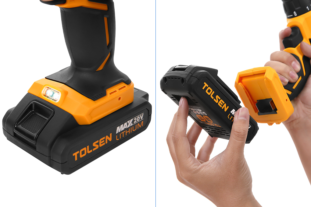 Thuận tiện, dễ thao tác với thiết kế công tắc đảo chiều và cò khoan Máy khoan Tolsen pin này được thiết kế công tắc đảo chiều và cò khoan thông minh, tiện lợi giúp người dùng dễ thao tác, thay đổi trong quá trình khoan.