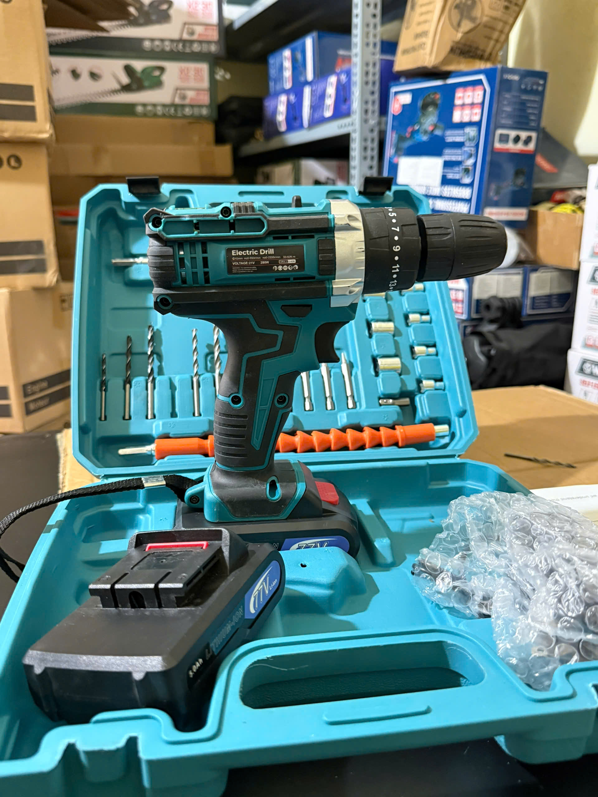 Máy khoan pin 77V Elex 3 chức năng có búa - Tặng kèm 24 chi tiết gồm các mũi khoan + Mũi bắt vít..